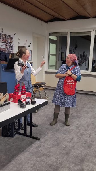 Annegret und Uli sorgten für viel Gelächter beim Schuhekaufen. Bei der Vorstellung des Models Versace Collection celebrated high top sneaker für 799 € meinte die Käuferin: 'Do ka i jo a Kuh kaufa'. Sie kaufte null, nix, nada und ging ohne Schuhe aus dem Lada.